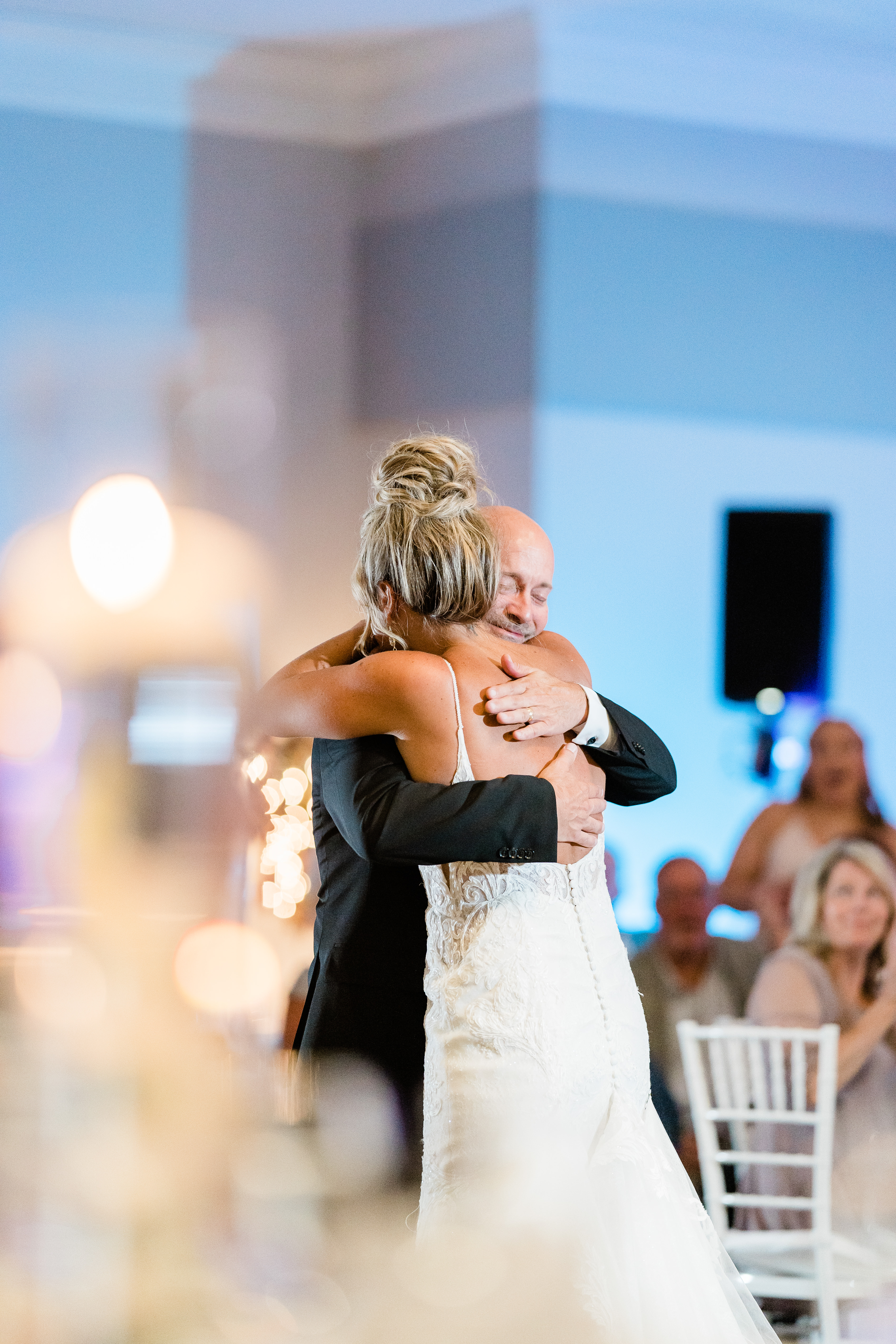 After Monica and Brent’s wedding ceremony, it was time to head to the reception! Throughout the modern Ohio golf course wedding ceremony there was hilarious speeches, fun memories, and emotional dances. The decor was elegant and timeless lending seamlessly to the overall theme. They also had an epic neon sign with their last name behind them. It was a perfect photo-op spot! Monica and her father shared an emotional daddy-daughter dance. That moment is one that we will look back on as a highlight of their day. Nevertheless this couple are two of the happiest and beautiful people we’ve met. We can’t wait to have more couples just like them!